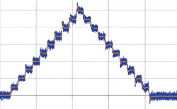 Shown below, 16 microstep performance in constant velocity mode (open loop): position deviation compared to ideal target position based on constant velocity. Note, the peak-peak deviation is only 1.5µm. The controller’s limited resolution of 0.6µm is largely responsible for behavior shown below. (Image: PI miCos)