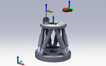Hexapods can carry loads up to 2 tons at any orientation and if required, be mounted upside down. Because the maximum permissible load of a Hexapod system depends on various parameters, such as the mounting position, the center of gravity of the load and the current position, suitable simulation programs are supplied that enable convenient set-up. They also allow easy determination of workspace and motion limits depending on the selected center of rotation or the current position.