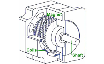 Stepper motors take discrete positions of constant distance. The most common stepper motors are two phase / four phase motors with 200 to 500 full steps per revolution. Advanced controllers can interpolate thousands of microsteps between each full step to achieve higher resolution. A controller commands a position by issuing a number of electric pulses. Position feedback is not required, but can help to improve performance. If no position feedback is used, parameters such as maximum acceleration have to be considered to avoid stalling the motor during acceleration. A mechanical damper on the motor shaft, which also works as a handwheel, supports smooth running and helps to achieve better dynamics. A combination of suitable linear measuring systems and high-resolution controllers increases the positioning repeatability.