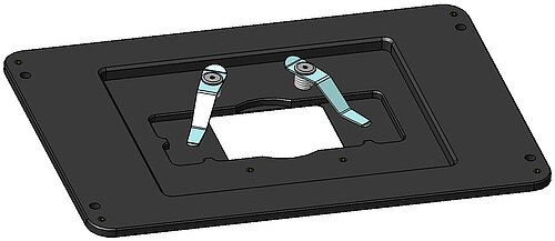 The PInano® P-736 piezo insert Z-scanner is designed as an insert for microscope stages with a 160x110mm standard K-frame opening. It has an aperture of 93x65mm for microscope slides, Petri dishes, etc. A larger version of the P-736 stage with a full size K-frame opening, for well plates etc., is also available.