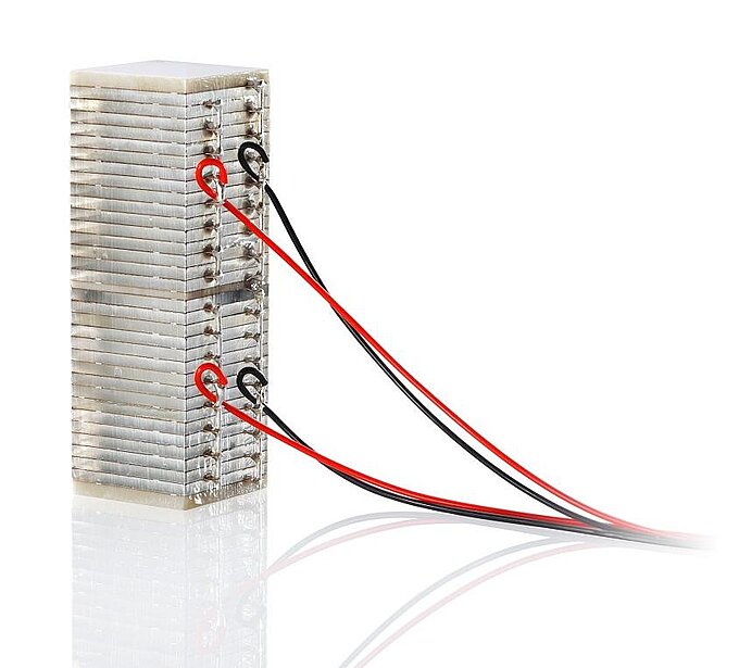 Multilayer elements offer decisive advantages over single-layer piezo elements regarding their technical realization: Due to the larger cross-sectional area, they generate higher forces and can be operated at a lower voltage (Fig. 6).