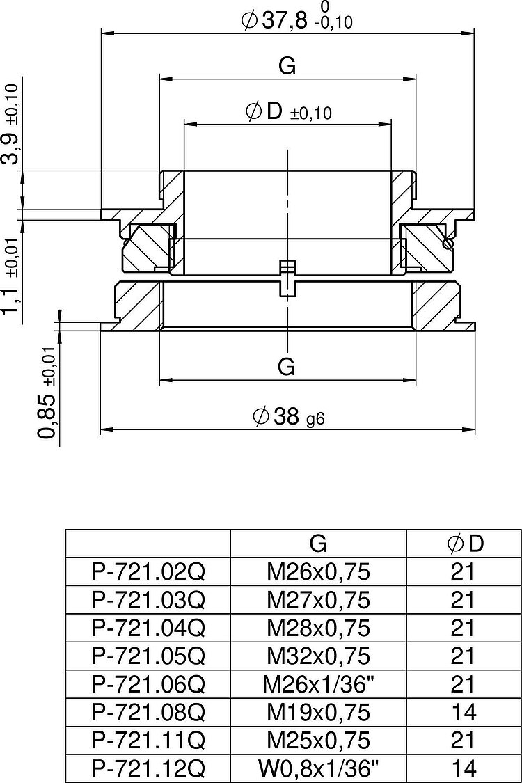 Thread adapter set for PIFOC focus scanners, M26 x 0.75 mm, aperture diameter 21 mm, for objective and microscope