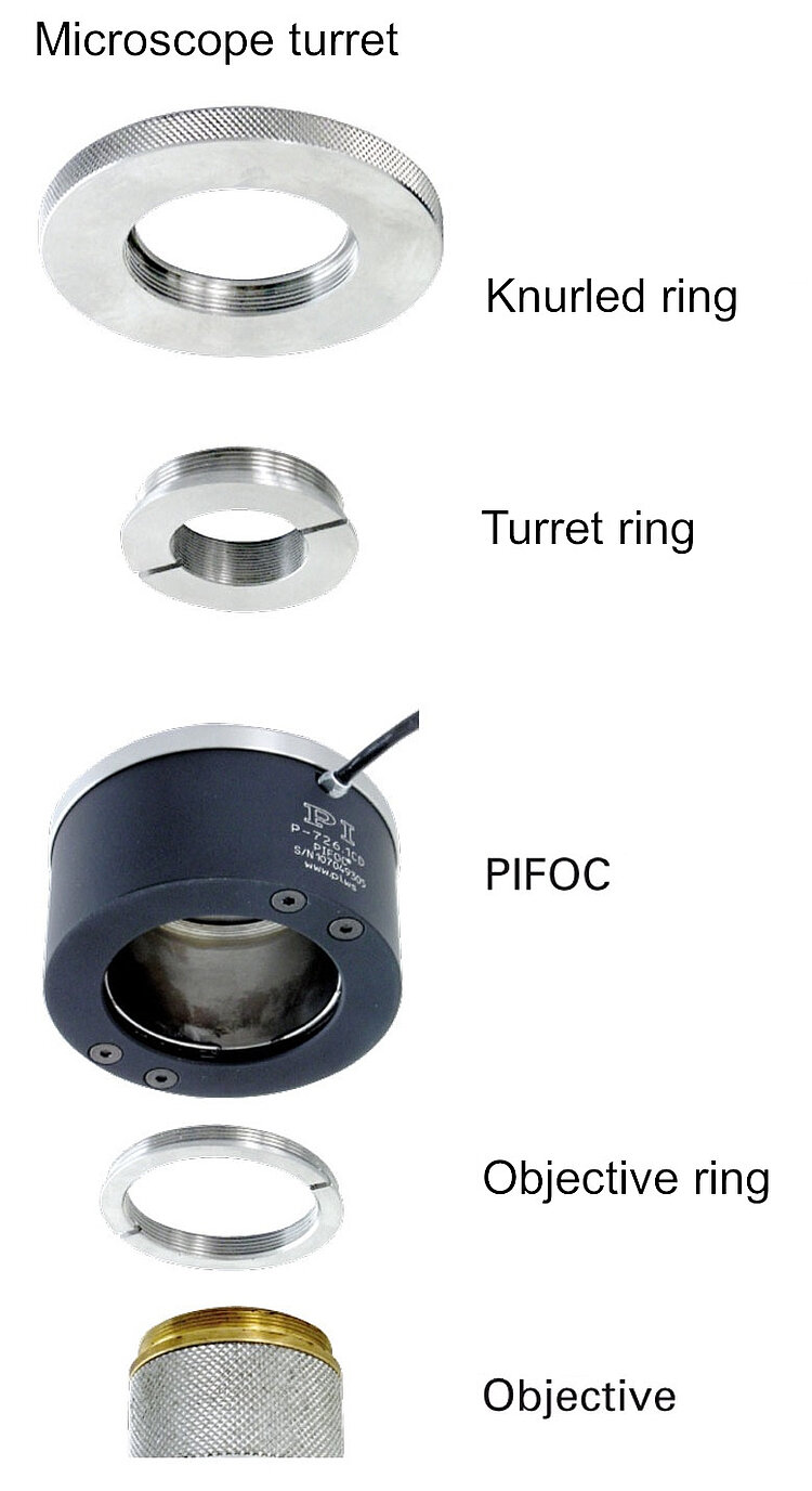 • Thread adapters adapting the PIFOC positioner to the microscope easily