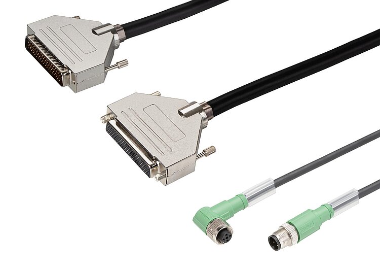 Data transmission cable for hexapods, drag chain compatible, HD D-sub 78 m/f, 2 m