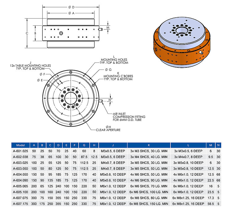 A-60X.XXXX PIglide RT Series of Non-Motorized Rotary Air Bearings