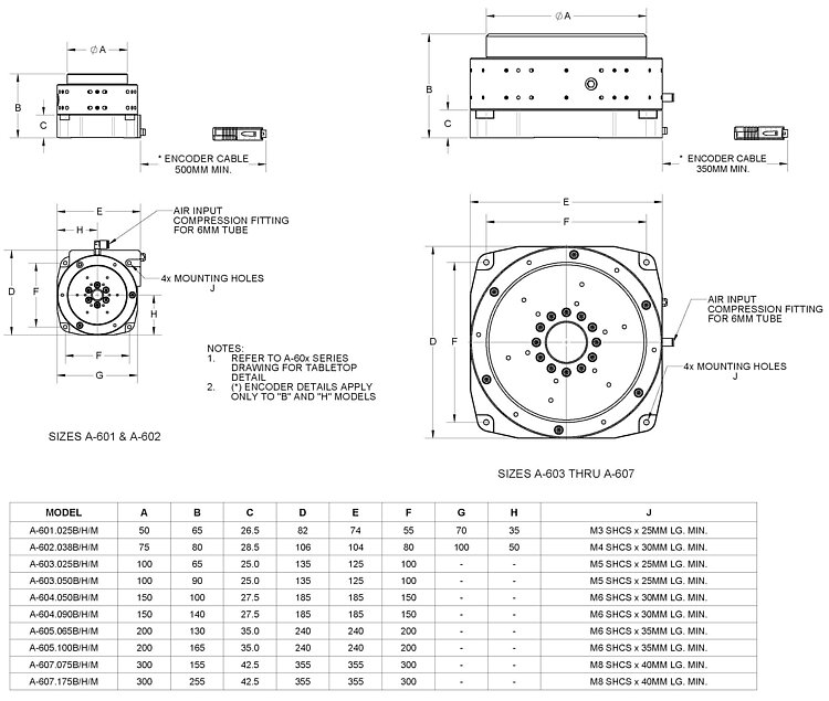 A-602.xxxH | A/B quadrature, differential, RS-422, 4 MHz | 133 | 2000 | 1 / revolution, one count over one step of the encoder, synchronized to output signal |