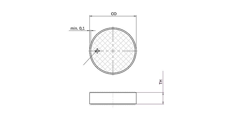Piezoelectric disk, outside diameter (OD) = 10 mm × thickness (TH) = 0.5 mm, piezo material PIC255, electrode Ag screen printed