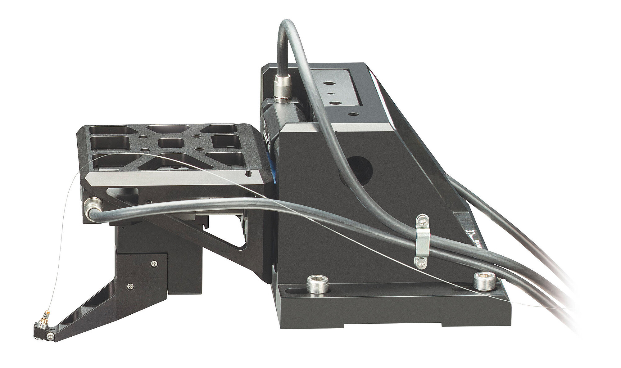 This compact solution integrates a high-precision XYZ stage (based on model M-122) for generous travel with an XYZ piezo nanopositioner of extraordinary speed and resolution (based on model P-616). A single controller manages all axes in single-sided and double-sided configurations: F-713.MA1 and F-713.MA2. Four high-resolution analog inputs provide connectivity to power meters, such as PI’s F-712.PM1 high-bandwidth optical power meter, for optimization and profiling, enabling efficient and fast automated fiber alignment. Soft limits are supported to ensure process safety. Starting with these sophisticated platforms, it is easy to configure automated alignment solutions of unprecedented speed that support functionalities such as submicron-sensitive wafer proximity automation.
