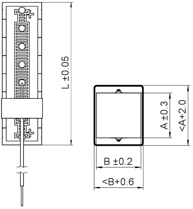 Dimensions A × B × L | Nominal travel range | Max. travel range | Blocking force | Stiffness | Electrical capacitance | Resonant frequency | |