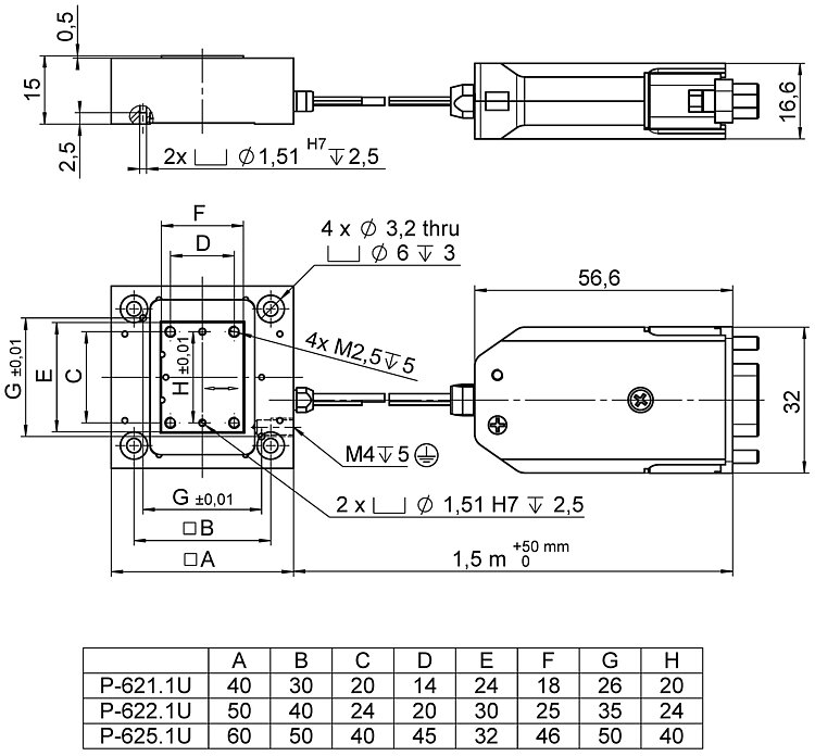 P-621.1U • P-625.1U PIHera Linear Precision Positioner