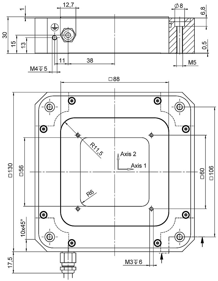 | Resonant frequency in X, unloaded | 500 Hz | 500 Hz | ±20 % |