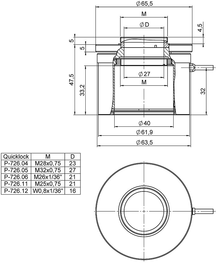 | Mechanical interface | M32 inner thread (can be adapted to all common threads using a QuickLock thread adapter) | |