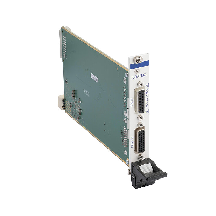 The E-713.S03CMX digital sensor signal transmission consists of a module that is installed in the housing of the E-713 Motion Controller and of a separate sensor box for installation close to the positioning system. Cables for connecting the sensor box to the module are not included in the scope of delivery as the length of the cables depends on the specific application.
