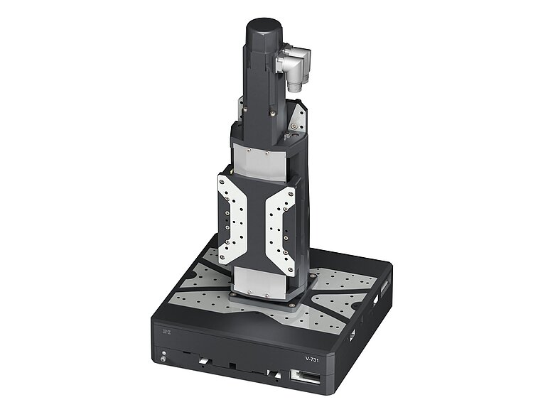 Hochlast-Lineartisch; Synchron-Servomotor bis 320 V; 102 mm Stellweg; 400 N Belastbarkeit; 300 mm/s maximale Geschwindigkeit; Kugelumlaufspindel; Inkrementeller Rotationsencoder, 20000 Impulse/U Auflösung, A/B-Quadratur, RS-422; 116 mm Breite