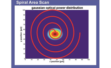 Two area scan algorithms, for characterization and determining of the area with the main optical peak, are available. Both are optimized for minimum excitation of mechanical resonances and shortest execution time.