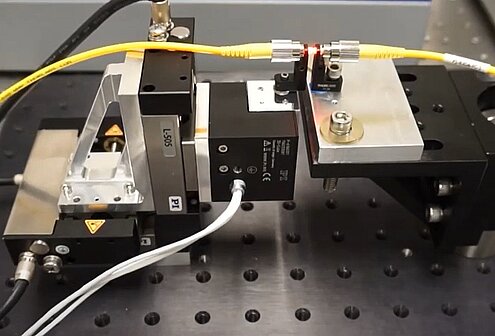 A compact, hybrid fiber aligner leverages both motorized and piezo-based positioning technologies to deliver high precision and efficiency in demanding photonics applications. In the video below, coarse positioning is achieved through three L-505 micropositioning stages, offering travel ranges to 1 inch in X, Y and Z, while the integrated P-616 NanoCube® XYZ piezo scanner provides rapid scanning speed and nanometer-accurate fine alignment. Flexure guides and long-life, all-ceramic insulated piezo actuators ensure mechanical stability and reliability over extended use. Direct measuring position sensors provide accurate position information to the controller.