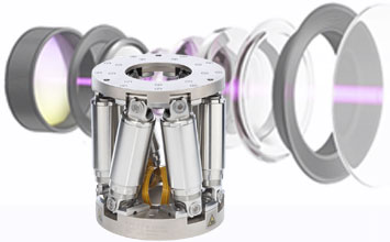 PI engineers designed a direct drive hexapod with frictionless drives and bearings for just that purpose. Hydraulic, or electric screw drives, always create and transmit additional vibrations onto the motion platform. PI’s approach is based on non-contact voice coil linear motor drives with flexure guides and flexure joints for the 6 “legs”. This design combined with a carbon fiber structure to reduce mass and inertia forms a highly responsive, dynamic, and precise 6-axis motion platform.